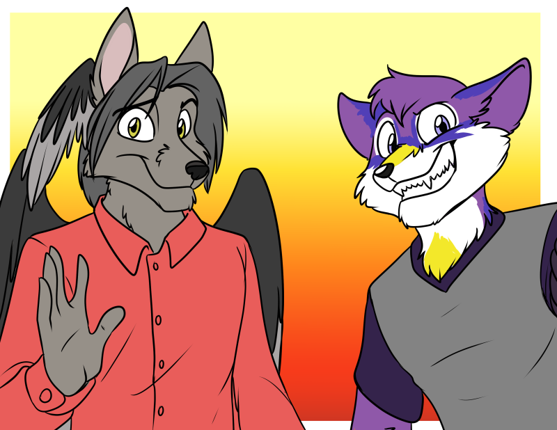 I also commissioned Foxena do a Door Sign for myself and Tapewolf. We printed it out and stuck it to the door to our room at conventions we were together at (if they allowed us to do it), but also ended up being used in our HeadwingsGaming stream for a while.