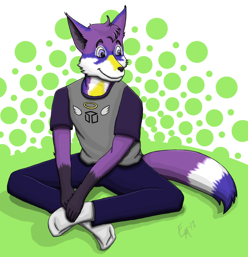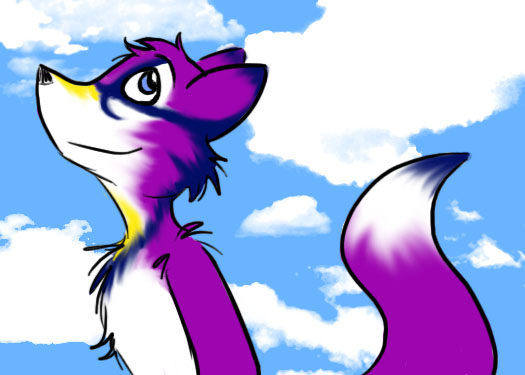 The artist was Beanie, who along with her cool art also did comics such as Sixpack of Otters and Pimo is Awesome! When I said they didn't need to fly, but still wanted that feeling of optimism and flight, she inorporated bird markings into the purple fox base (yes, still sticking with the purple fox).