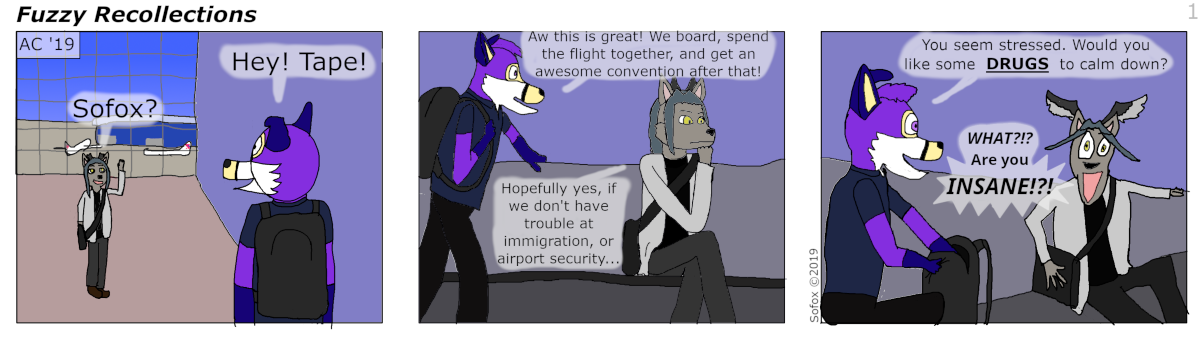I even finally started my long planned "Convention Memories Webcomic" with my new character design starring. (Art by me, Tapewolf character by Tapewolf)