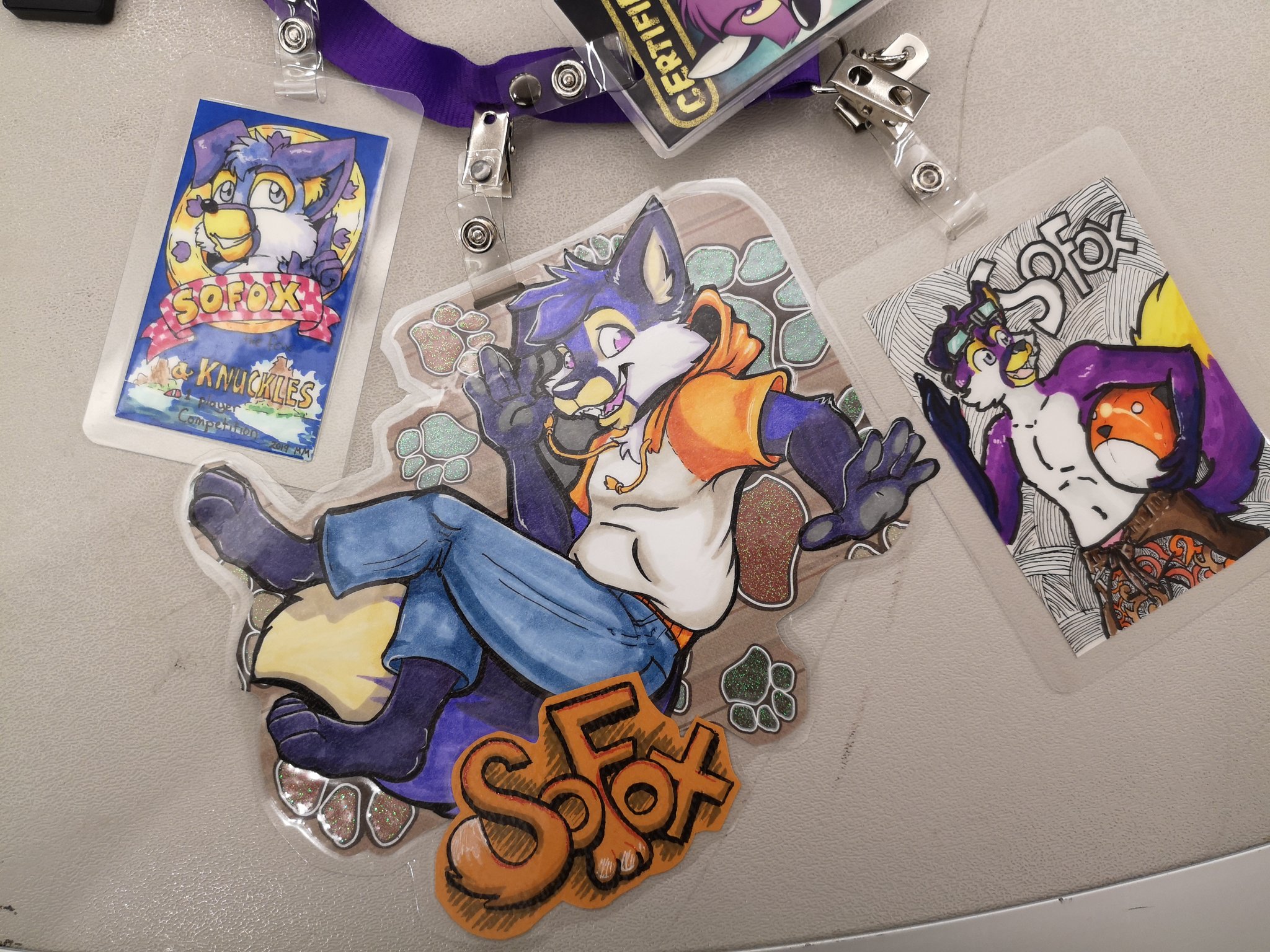 So the years went on. I'd get the occassional gift art, and other times I commissioned someone at a convention, getting a nice variety of Sofox con badges.