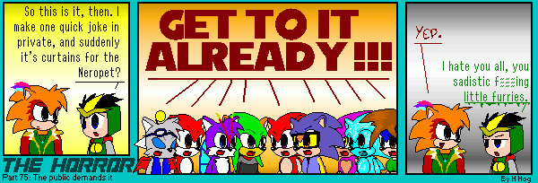 The reception of the character was decent. In my intro post, some thought "The Flying Fox" suited me better which made me a bit sad. Still, it was more distinctive, and like its predecessor, turned up in various community endevours, add on stories, and sprite comics. For example, The Horror #75 by H Hog.