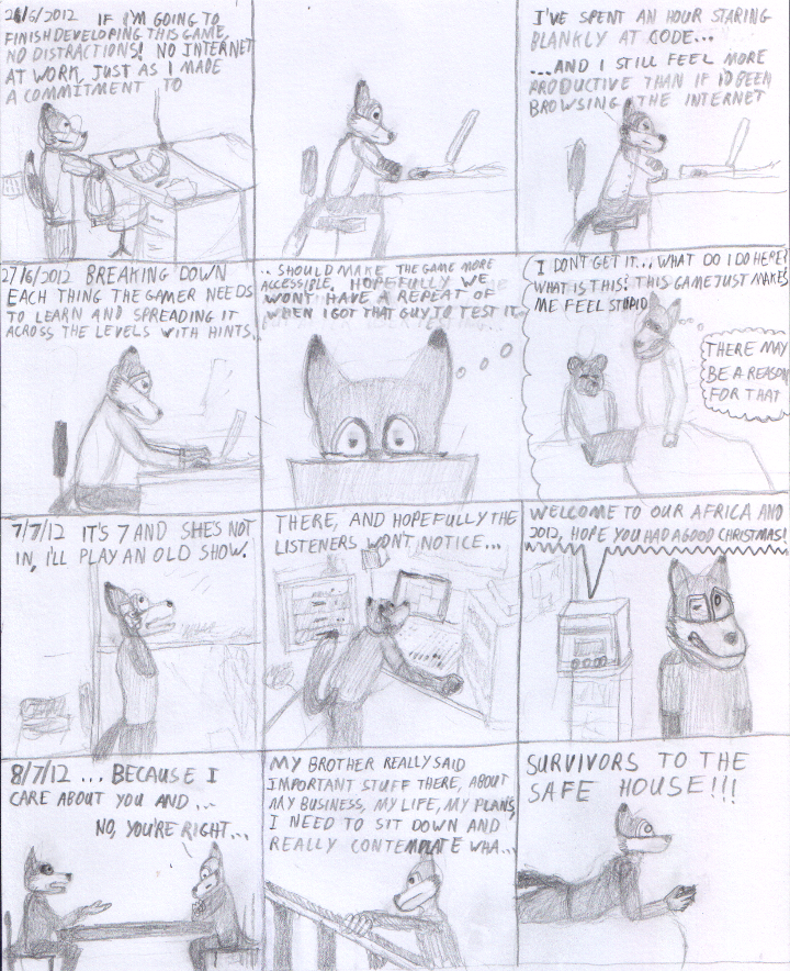 It wasn't just other people's art, I tried my own hand at drawing my own character. There was even a brief newspaper style slice of life webcomic.