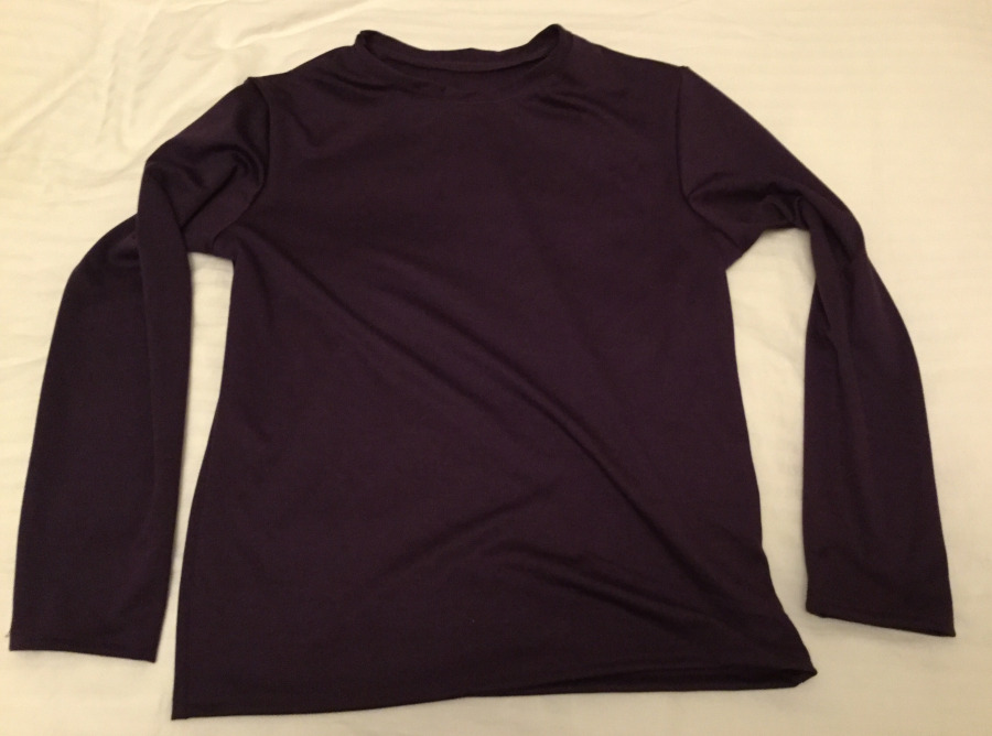 Things would evolve as I gradually learned how to sew. For instance, with Burda Style Pattern 6602 Shirt, I made the long sleeved shirt using purple jersey knit fabric. Great for covering the arms, and comfy.