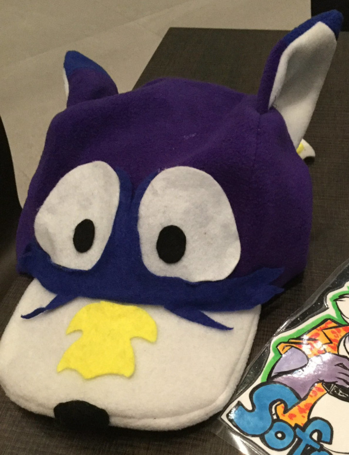 My pride and go to convention headwear for a long time. Both the right colours and markings, and a fun idea. Baseball caps with eyes on them can be found if you look through Google Images, but they're surpisingly uncommon at conventions.