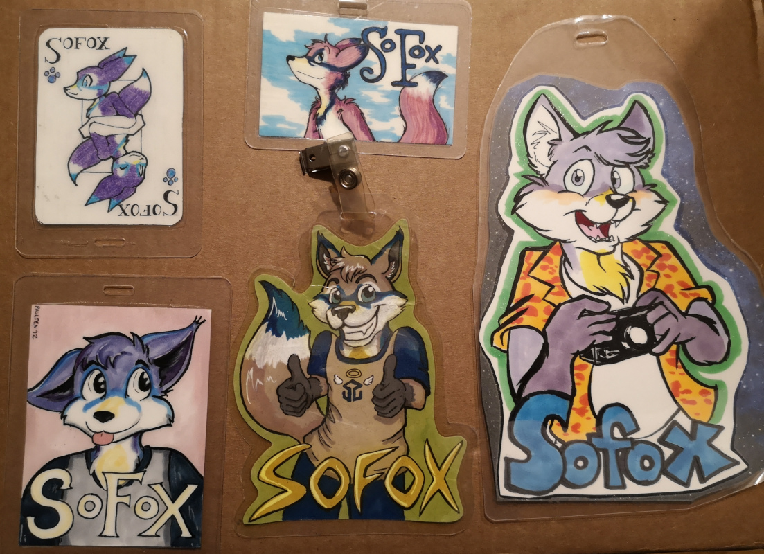 So the years went on. I'd get the occassional gift art, and other times I commissioned someone at a convention, getting a nice variety of Sofox con badges.