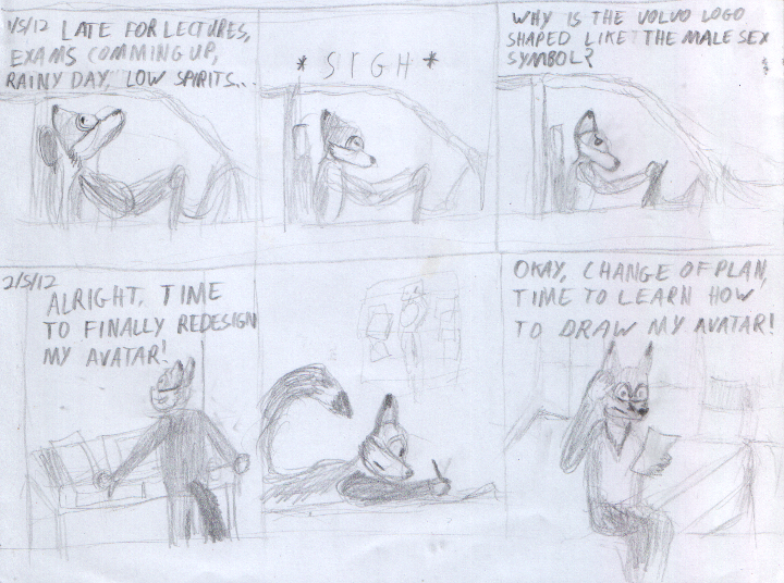 It wasn't just other people's art, I tried my own hand at drawing my own character. There was even a brief newspaper style slice of life webcomic.