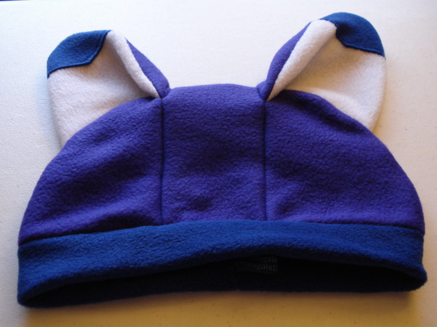 Essentially, it's a fleece "sleeve" that fits over a standard off the shelf baseball cap. It make the bill of the cap into a muzzle, and has ears. The eyes and markings are coloured felt glued to the surface of the cap.